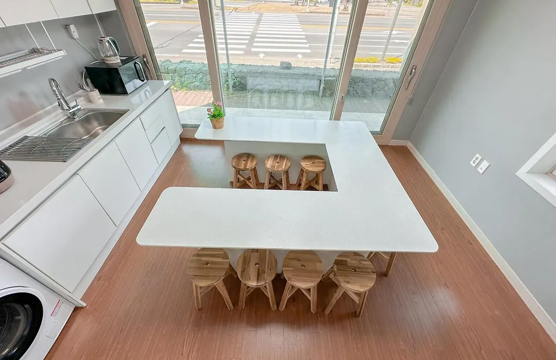 The kitchen amenities at the Jeju property feature a dishwasher, provided in an outdoor dining area.